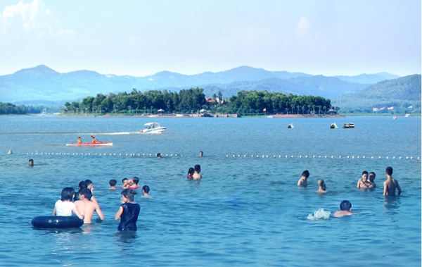 Nhờ núi phía bắc chán gió mà mùa đông không quá lạnh, phía tây quang đãng làm ấm lòng du khách buổi chiều đông. Mùa Hè, gió nam lồng lộng, bãi tắm đông cả ngàn người, lớp lớp sóng vỗ gợi cảm giác biển khơi... cát mịn màng; có câu lạc bộ du thuyền cùng nhiều hình thức vui chơi nghỉ dưỡng, cao cấp có, bình dân có. Đó là khu dịch vụ ven hồ với hàng trăm khách sạn, nhà hàng... Là khu du lịch sinh thái hoành tráng phía bắc hồ với nhà hàng tre độc đáo đã được giải Quốc tế về kiến trúc xanh...Là sân Golf 18 lỗ, đáo chim quanh năm chim cò về làm tổ...cùng một số dự án lớn đang và sẽ xây dựng quanh hồ...