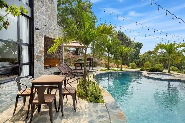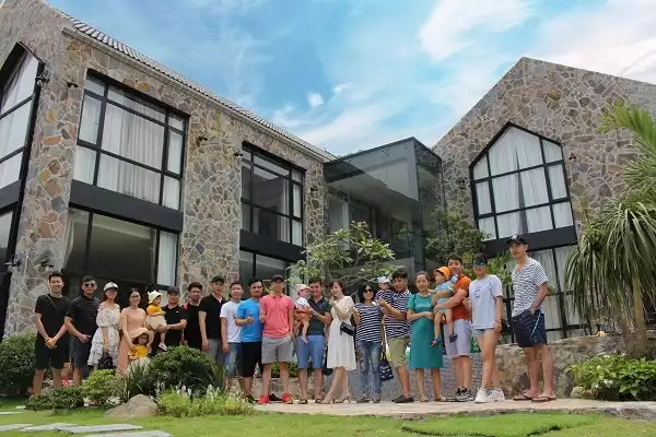 Biệt thự có 1 phòng sinh hoạt chung 100 m2 (bao gồm khách, bếp và phòng ăn), có 4 phòng ngủ tiêu chuẩn với tổng cộng 7 giường King Size, điều hòa cho mỗi phòng, 5 phòng vệ sinh, và 4 nhà tắm riêng khép kín. Phòng sinh hoạt chung có 2 đệm để ngủ thêm người. Cùng với đó là bể bơi ngoài trời 40 m2 kèm bể sục 4 m2, có khu vực nướng BBQ ngoài trời.