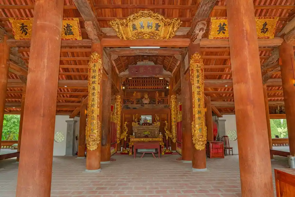 Tại gian thờ chính trong đình có bức hoành phi đời Nguyễn với 4 đại tự “NAM THIÊN TRIỆU THỦY” nghĩa là “Khởi dựng trời Nam” được sơn son thếp vàng chế tác năm Bảo Đại – Nhâm Ngọ (1942).