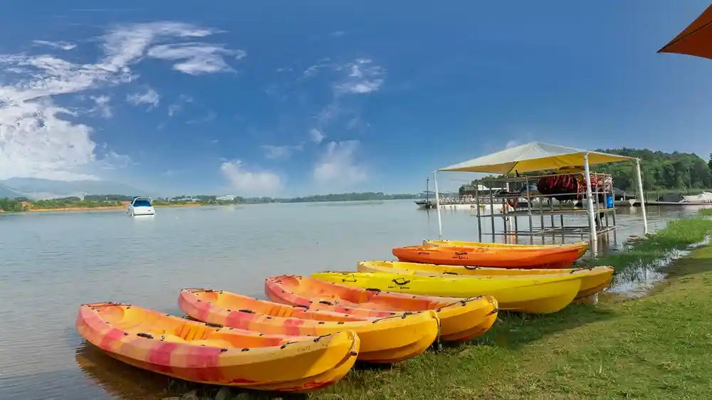 Sở hữu khoảng thiên nhiên rợp bóng cây cỏ và không gian trong lành, khuôn viên hồ Đại Lải còn là địa điểm vô cùng lý tưởng để du khách tứ phương đến cắm trại và tổ chức các buổi tiệc nướng cuối tuần. Không gian nơi đây sẽ tạo cảm giác cực nhẹ nhàng, thư giãn để du khách quây quần bên nhau, cùng cụng những ly bia và ăn đồ nướng thỏa thích. Say sưa hát ca và nói chuyện rôm rả giữa những tán cây rì rào, chia sẻ từng khoảng khắc kỷ niệm đáng nhớ giữa bao làn sóng, Đại Lải chính là thiên đường thiên nhiên giúp quý khách quên đi những áp lực căng thẳng của cuộc sống.
