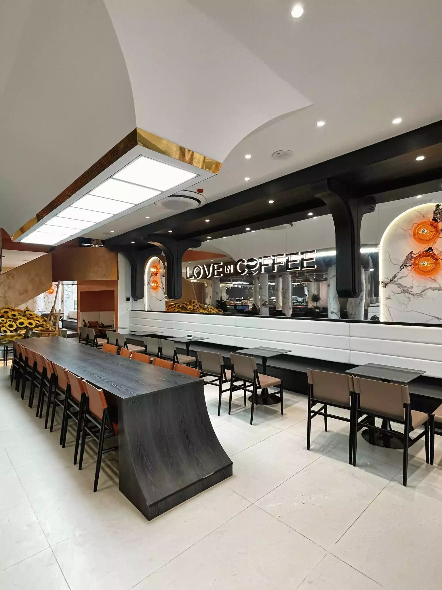 Không gian bên trong Love in Coffee được trang trí tinh xảo, ánh sáng ấm áp, nhiều góc ngồi đa dạng từ bàn cá nhân cho đến bàn nhóm. Điều này giúp quán trở thành điểm hẹn phù hợp cho nhiều mục đích: hẹn hò, gặp gỡ bạn bè hay làm việc độc lập. Sự kết hợp hài hòa giữa nội thất và không gian xanh nhỏ xinh cũng mang đến cảm giác dễ chịu, thoải mái cho khách.