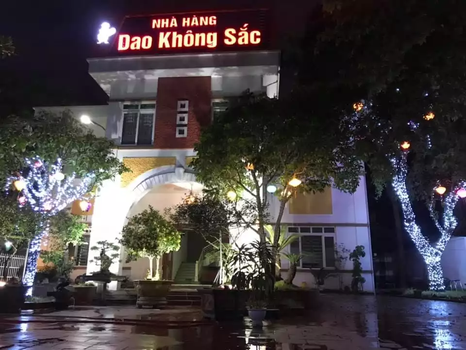 Nhà hàng Dao Không Sắc với lối kiến trúc độc đáo mới mẻ kiểu nhà vườn, không gian thoáng đãng giúp thực khách trải nhiệm món ăn một cách trọn vẹn nhất. Nhà hàng có đội ngũ đầu bếp chuyên nghiệp thể hiện sự tinh tế qua hương vị, thanh sắc hòa quyện của các món ăn và đội ngũ nhân viên nhiệt tình. Các món ăn tại đây rất đa dạng nhưng chủ yếu là: Cá, gà, ba ba, dê, lươn, ốc, hải sản, đồ rừng... và nhiều món ăn hấp dẫn khác. Nhà hàng Dao Không Sắc chuyên tổ chức các sự kiện lớn nhỏ như: Đám cưới, hội nghị, họp lớp, tất niên... Bên cạnh đó, nhà hàng cũng phục vụ tiệc di động với xe trung chuyển tận nơi bạn muốn.