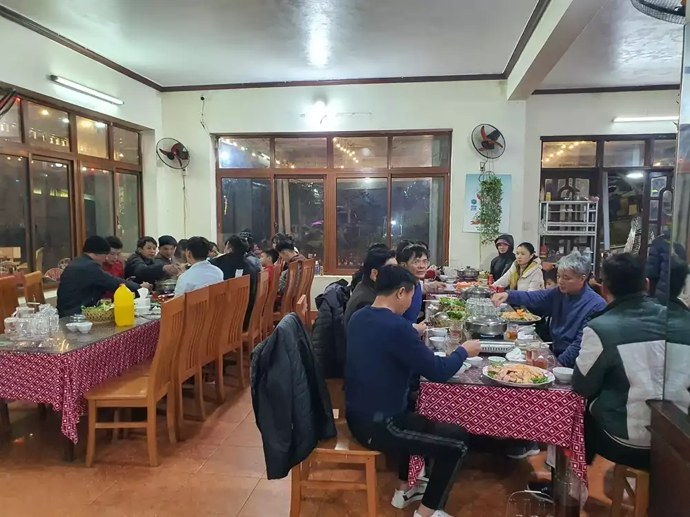 Đến đây, du khách sẽ được thưởng thức một thực đơn phong phú với rất nhiều những món ăn đặc sắc. Các món ăn được nấu bằng nhiều nguyên liệu khác nhau như lợn, gà, cá, dê núi,… và các loại rau, củ tươi ngon mang đến cho thực khách những món ăn chất lượng. Đặc biệt, lẩu ở đây có nhiều loại nhưng tựu chung đều rất đậm đà. Nước lẩu được nêm nếm vừa vặn, thịt nhúng được ướp đầy đủ gia vị, làm cho nồi lẩu càng ăn càng ngon.