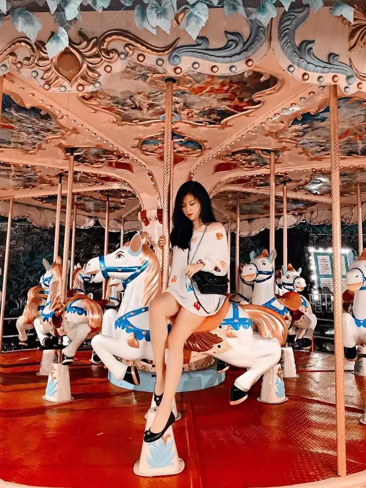Đặc biệt, tại đây còn có vòng đu quay ngựa gỗ dành cho các bé khi tới Sky Garden. Bố mẹ không còn phải lo lắng con cái sẽ chạy lung tung bởi nơi đây có rất nhiều vật trang trí dễ thương từ tấm biển hình người tuyết đáng yêu cho đến chiếc xích đu trắng mộng mơ.